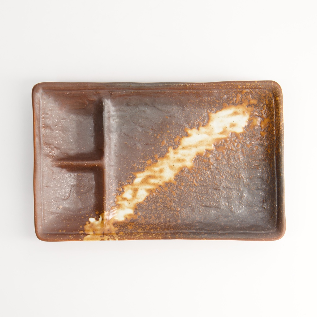 Mino Craft Divided Plate 21x13x2.5cm Brown/white 6/48