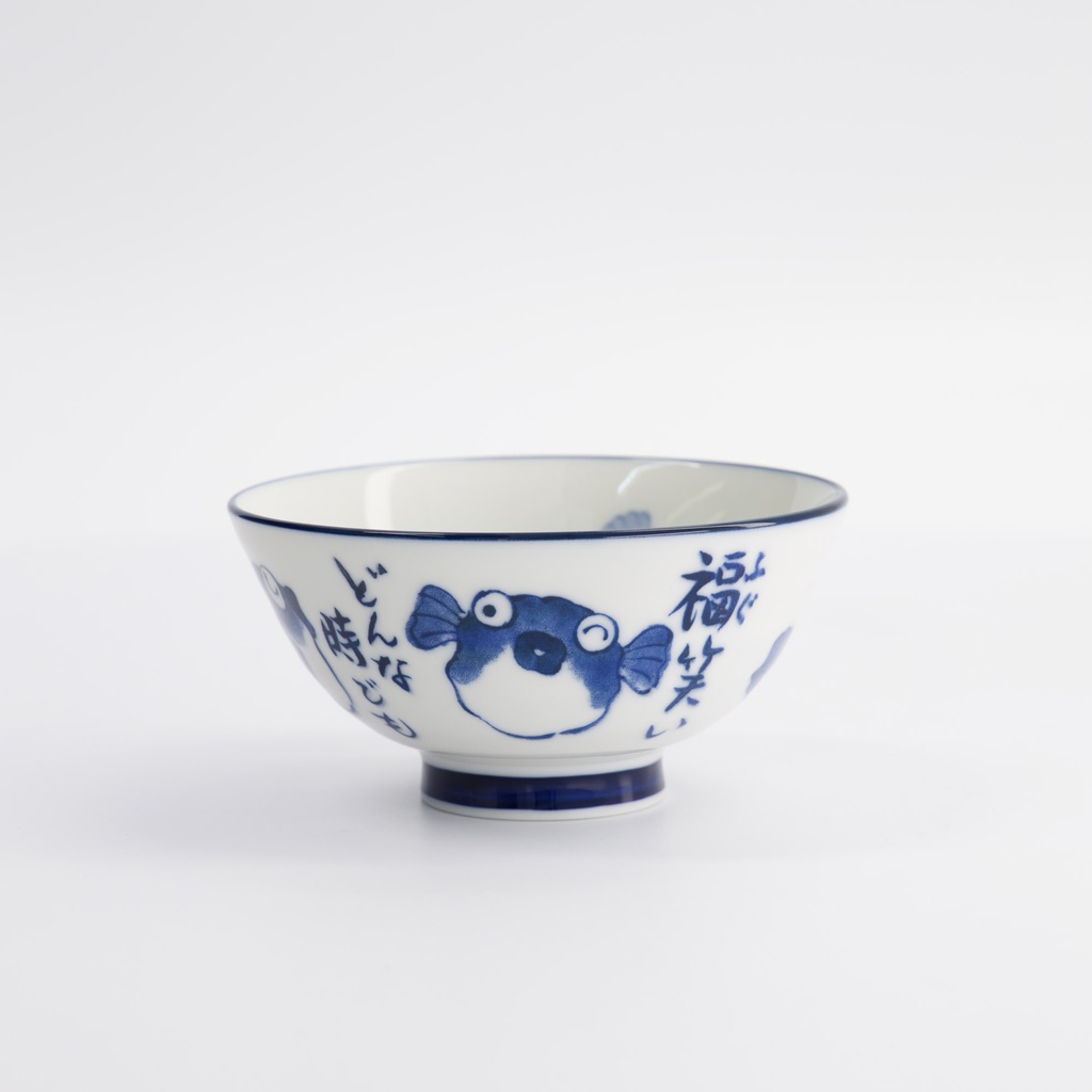 Kawaii Rice Bowls 11.3x5.8cm 300ml Bowl Blowfish Bl/wh 33208 5/80