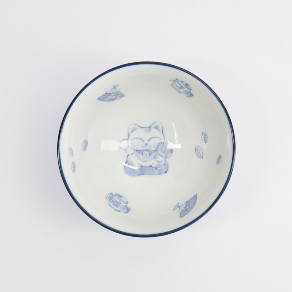 Kawaii Rice Bowls 11.3x5.8cm 300ml Bowl Lucky Cat Bl/wh 33210 5/80