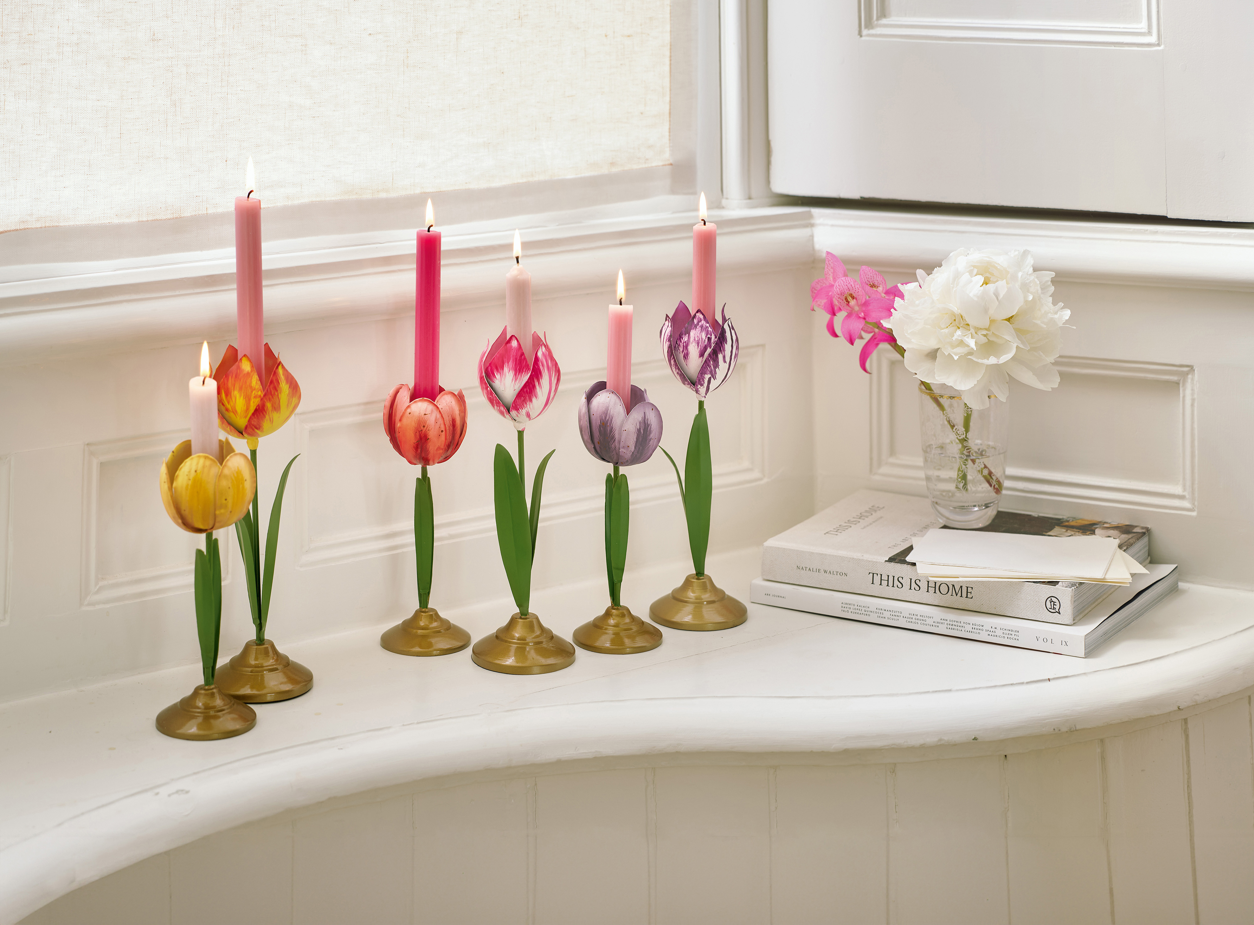 Set/2 Tulip Candle Holders Metal Lilac